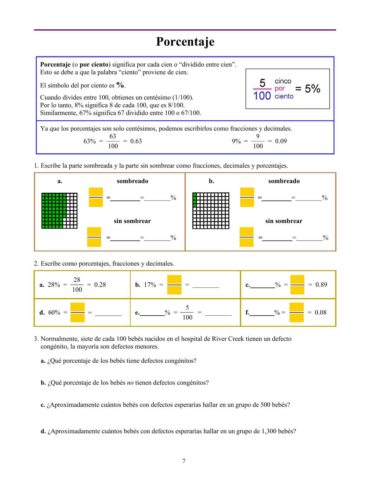 Matemáticas – Porcentaje 6° Primaria – 1° y 2° Secundaria
