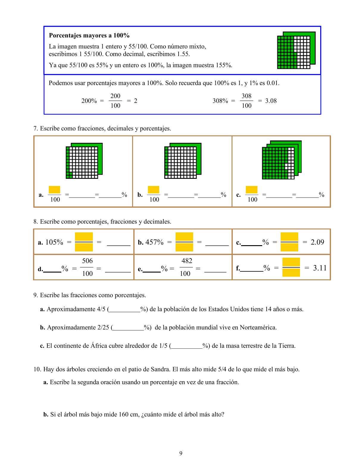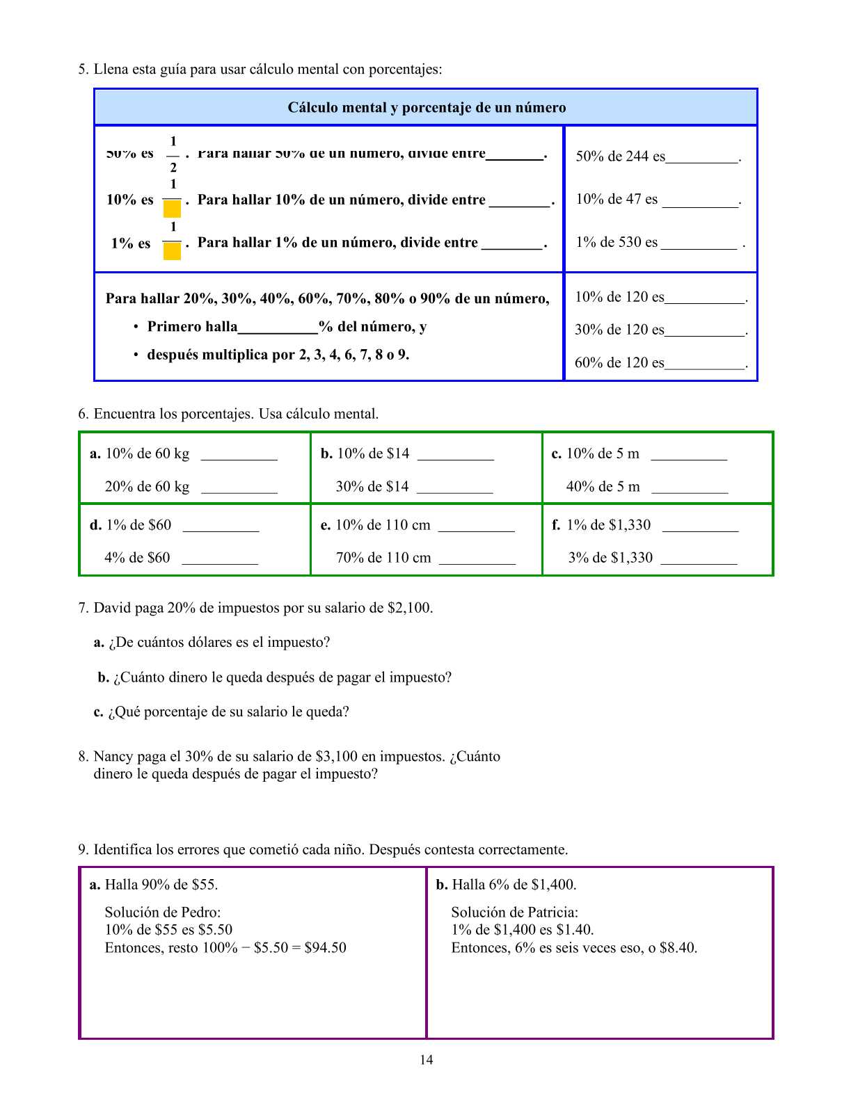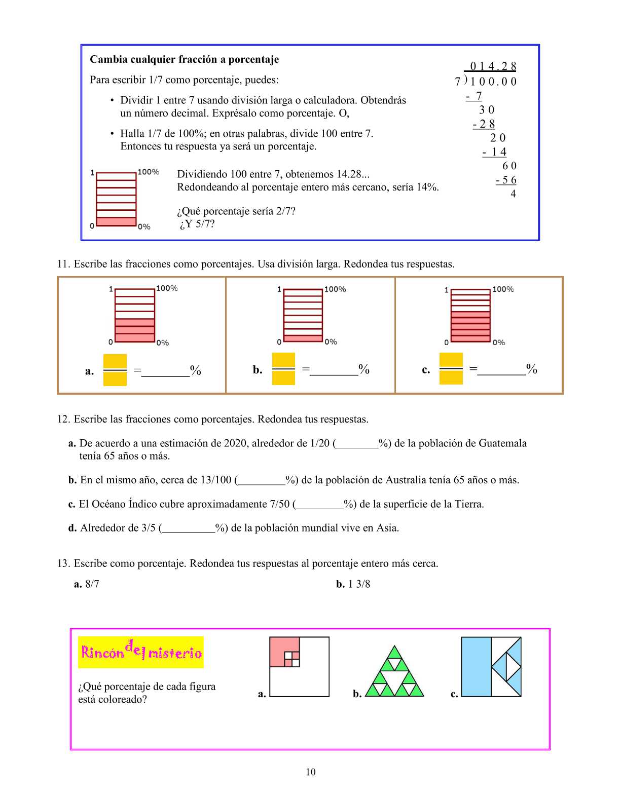 Tras una lección de repaso a la mitad del libro, estudiamos las bases nuevamente en las lecciones Porcentajes y Resolviendo problemas básicos de porcentajes. Mientras los conceptos son los mismos que en las primeras lecciones, esta vez se incluyen más números decimales y se avanza más rápidamente, debido a que estas dos lecciones fueron escritas originalmente para 7° grado.